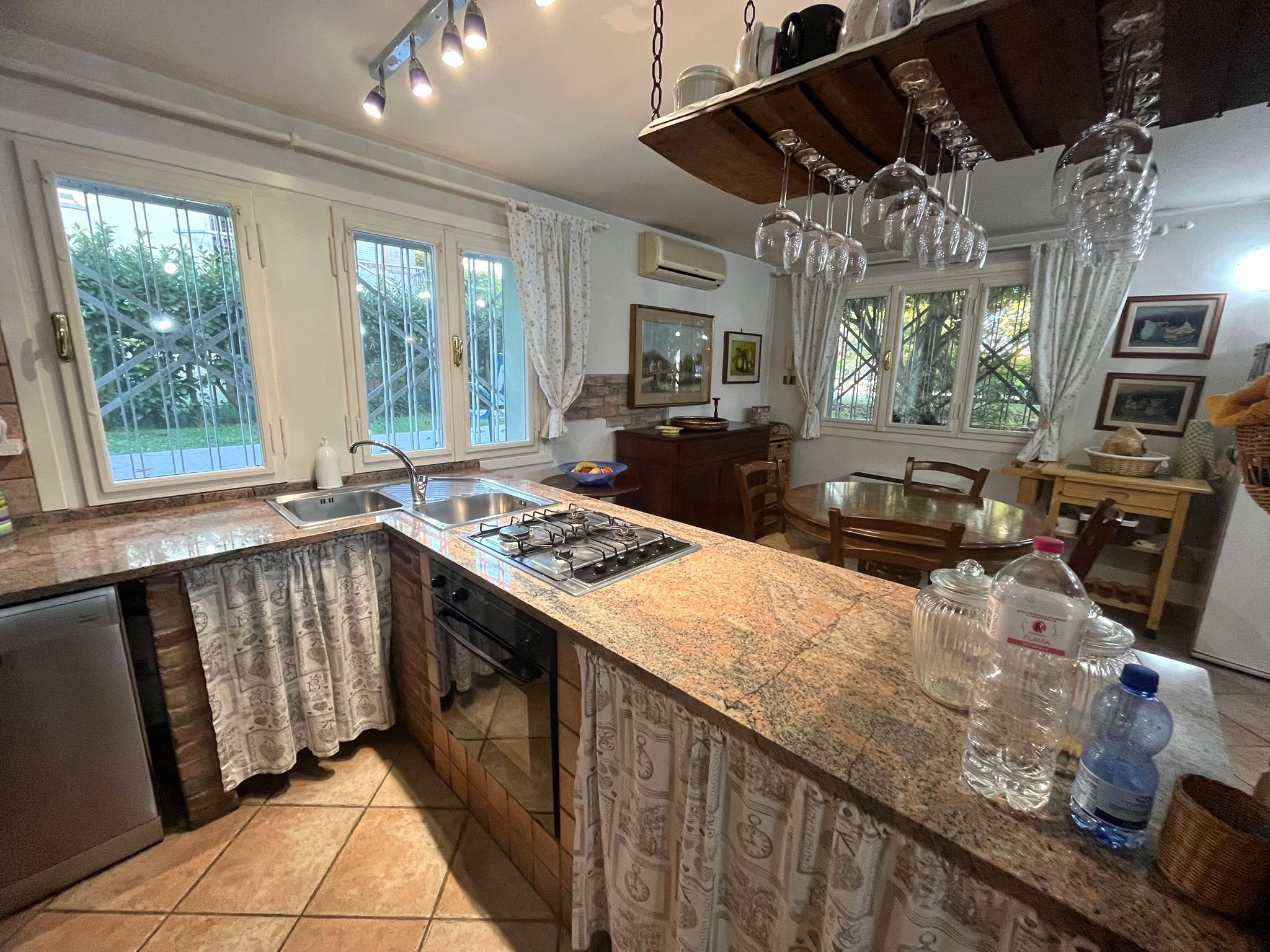 La villa si presta perfettamente ad essere ripristinata come abitazione unifamiliare: è infatti possibile riadattare il piano terra al suo uso originario come zona accessoria o taverna, con spazi perfetti per realizzare un’ampia area living con una cucina rustica.
