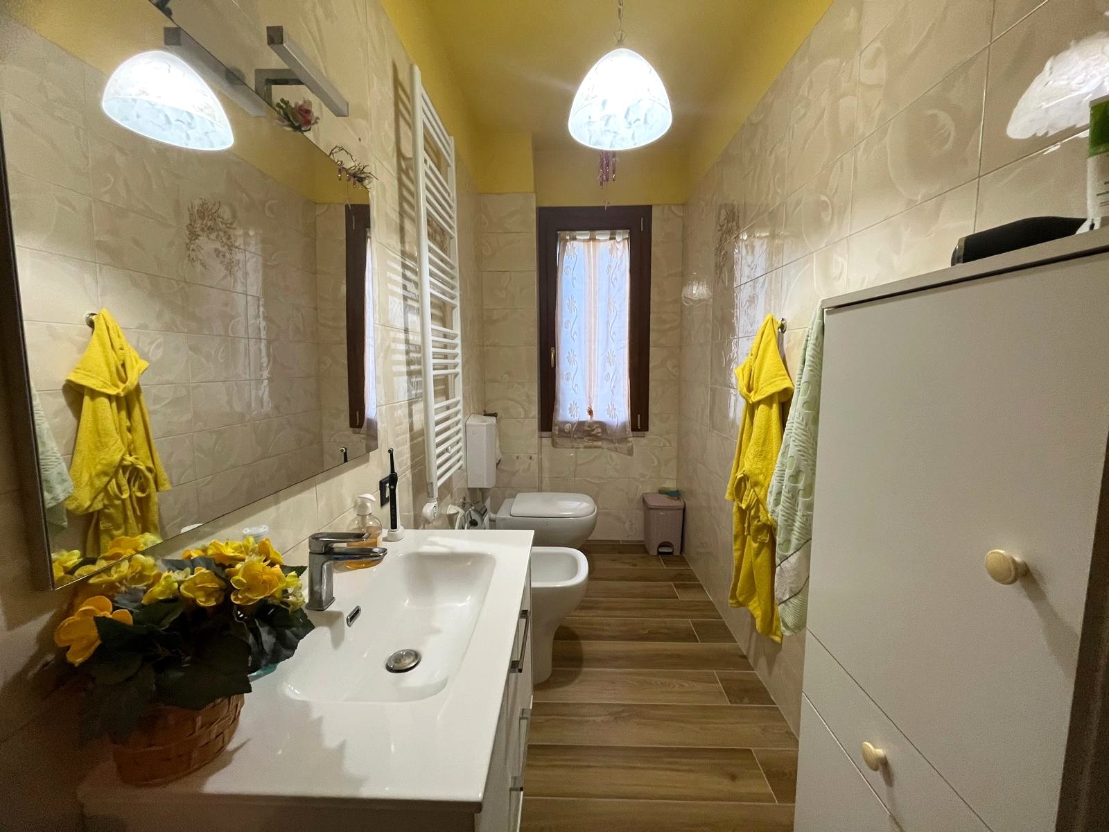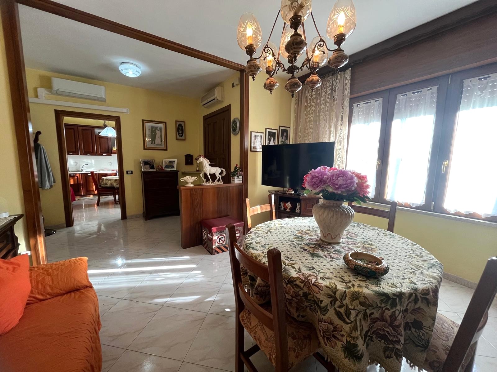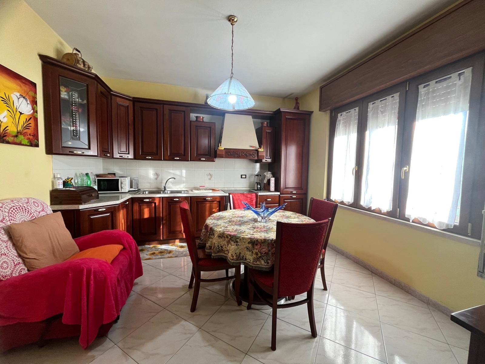 La prima abitazione, posta al piano rialzato, è un quadrilocale ben distribuito di circa 100 mq, composto da ingresso, cucina abitabile, soggiorno, due camere matrimoniali e bagno.