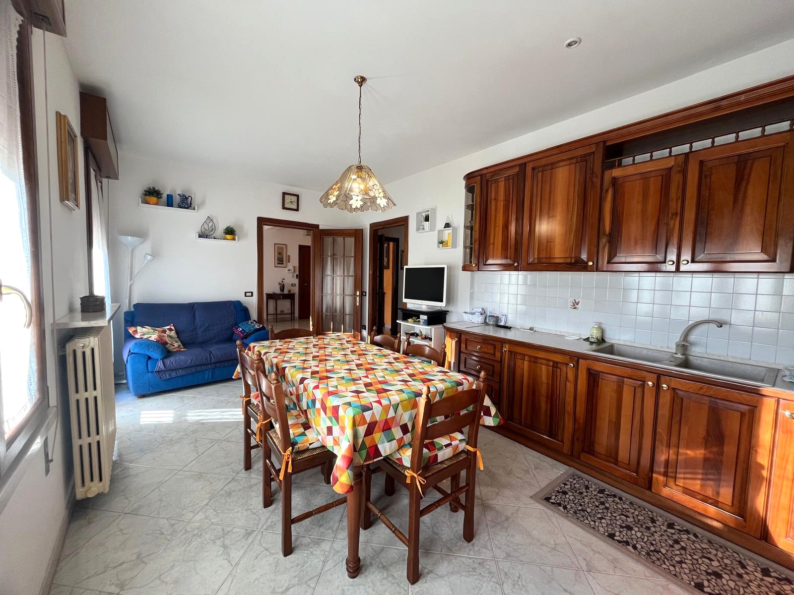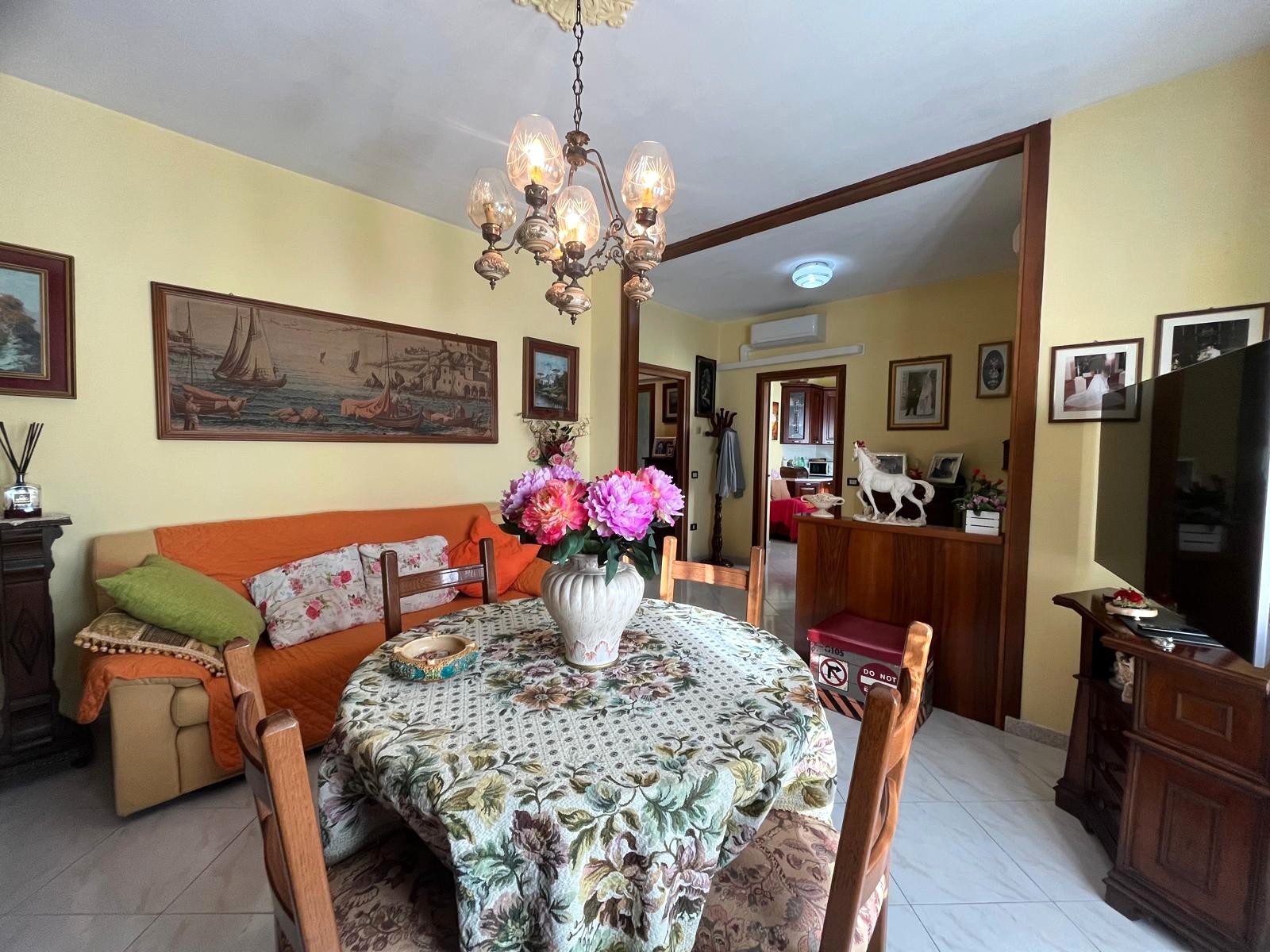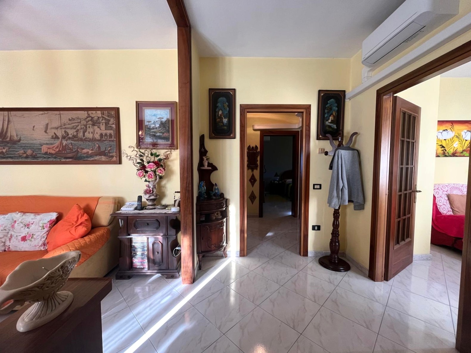 La prima abitazione, posta al piano rialzato, è un quadrilocale ben distribuito di circa 100 mq, composto da ingresso, cucina abitabile, soggiorno, due camere matrimoniali e bagno.