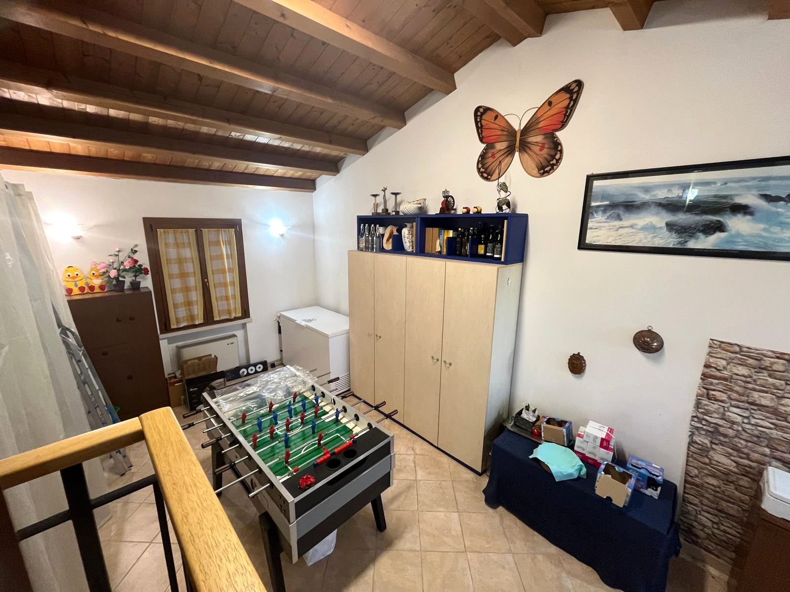 La seconda abitazione, di circa 160 mq si sviluppa su due livelli. Si accede tramite una porta d’ingresso al piano terra, dove si trova un bagno di servizio, e una scala interna conduce al piano primo, che costituisce la parte principale dell’abitazione. Qui si sviluppano soggiorno, cucina abitabile con terrazzino, due camere matrimoniali e un locale aggiuntivo utilizzabile come studio o terza camera. Sempre al piano primo è presente una caratteristica taverna con travi a vista, che conferisce calore e personalità agli spazi.